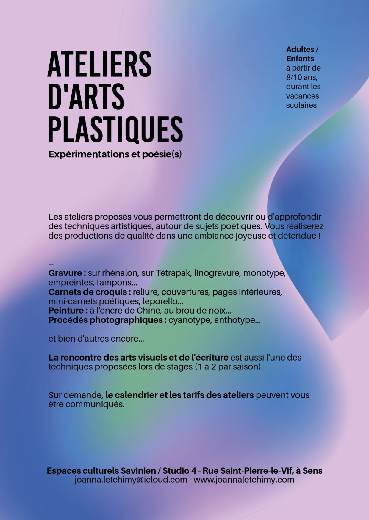 Demandes de renseignements et d’inscriptions auprès de l’artiste Joanna Letchimy par mail (en indiquant vos coordonnées) : joanna.letchimy@icloud.com