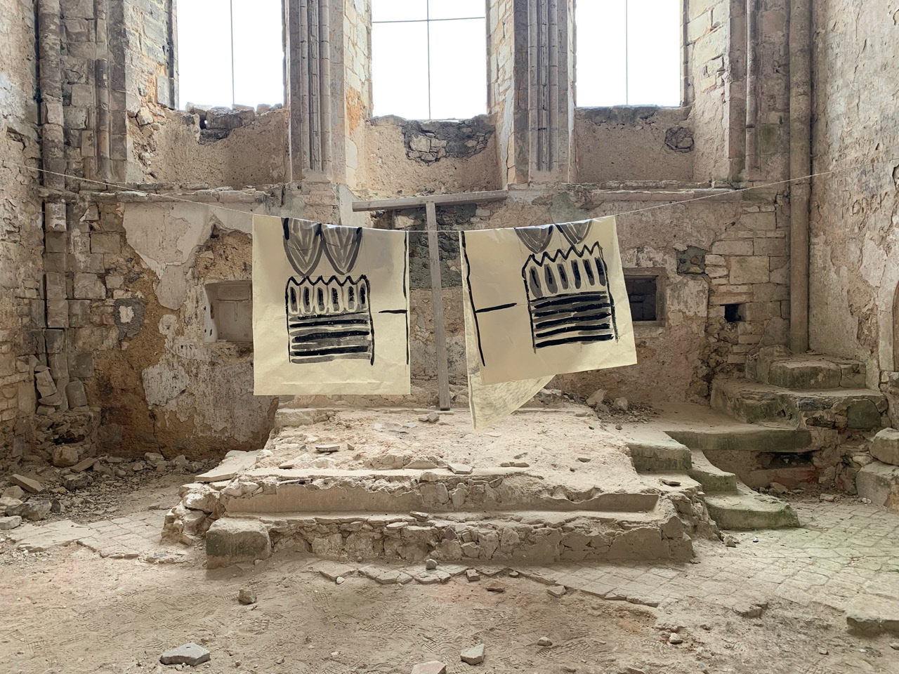 Ce travail a débuté en 2023 dans cette chapelle, à Saint-Julien-du-Sault, en collaboration avec une autre artiste, Micha Tauber, qui travaille notamment sur la collecte de souvenirs qui correspondant à des expériences, à des instants et en couleurs.